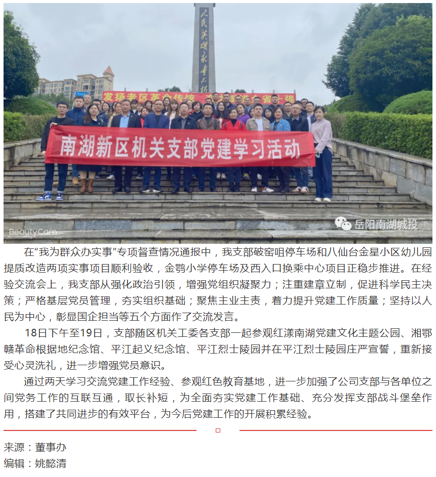交流黨建工作經(jīng)驗(yàn)、參觀紅色教育基地——南湖城投支部參加2021年區(qū)機(jī)關(guān)基層黨建工作講評(píng)會(huì)暨機(jī)關(guān)黨建工作學(xué)習(xí)交流活動(dòng)