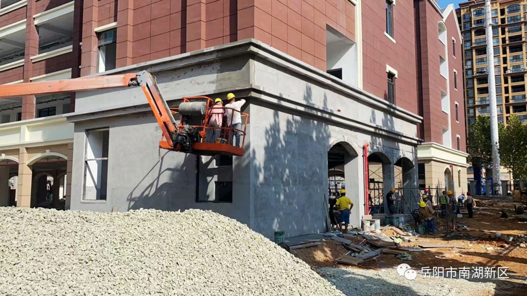 在項(xiàng)目施工現(xiàn)場(chǎng),6臺(tái)挖掘機(jī)、2臺(tái)汽車吊和十幾臺(tái)運(yùn)輸車輛正在繁忙運(yùn)作,工地上每天都有400名施工人員分散在各個(gè)工作面,大家或捆扎鋼筋,或貼瓷磚,或噴刷油漆,或搬運(yùn)外墻裝飾塑形料、或栽種苗木……施工現(xiàn)場(chǎng)一派忙碌景象。