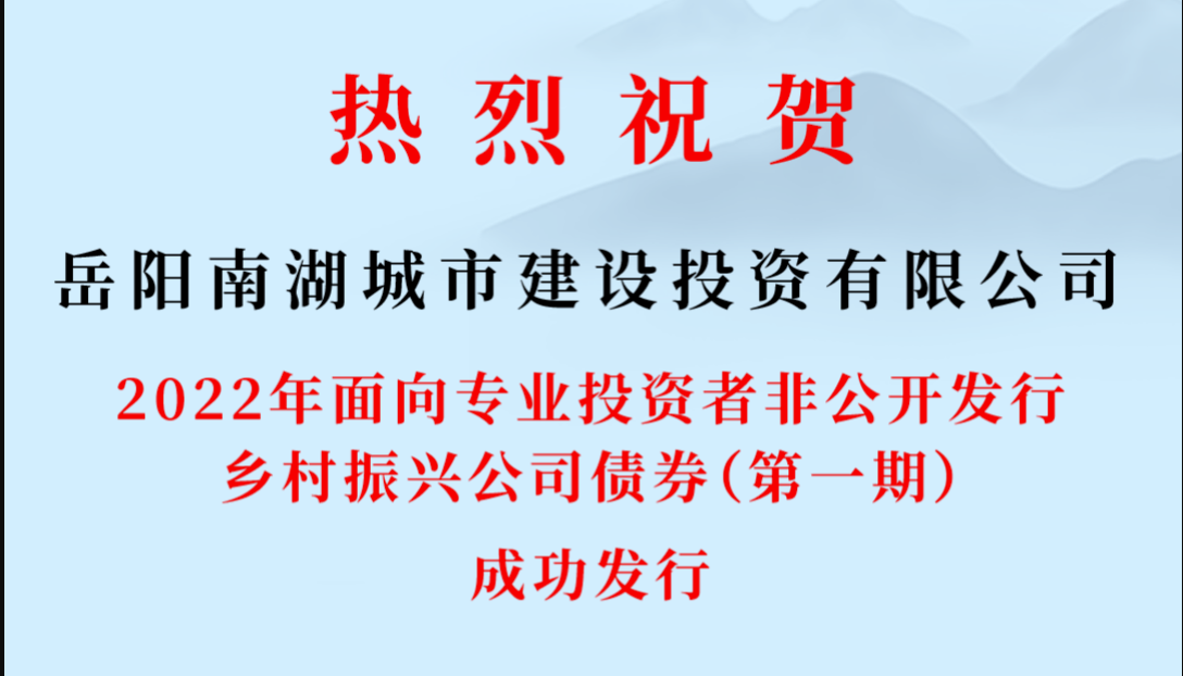 熱烈祝賀!南湖城投公司成功發(fā)行3.35億公司債券