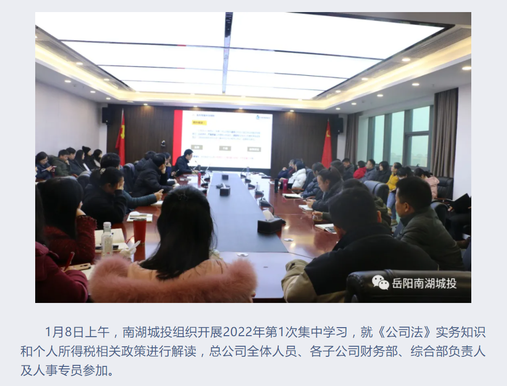 岳陽南湖城市建設投資有限公司組織開展2022年第1次集中學習