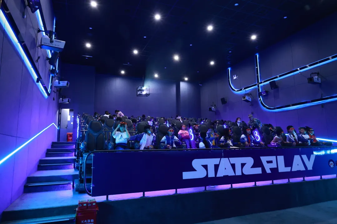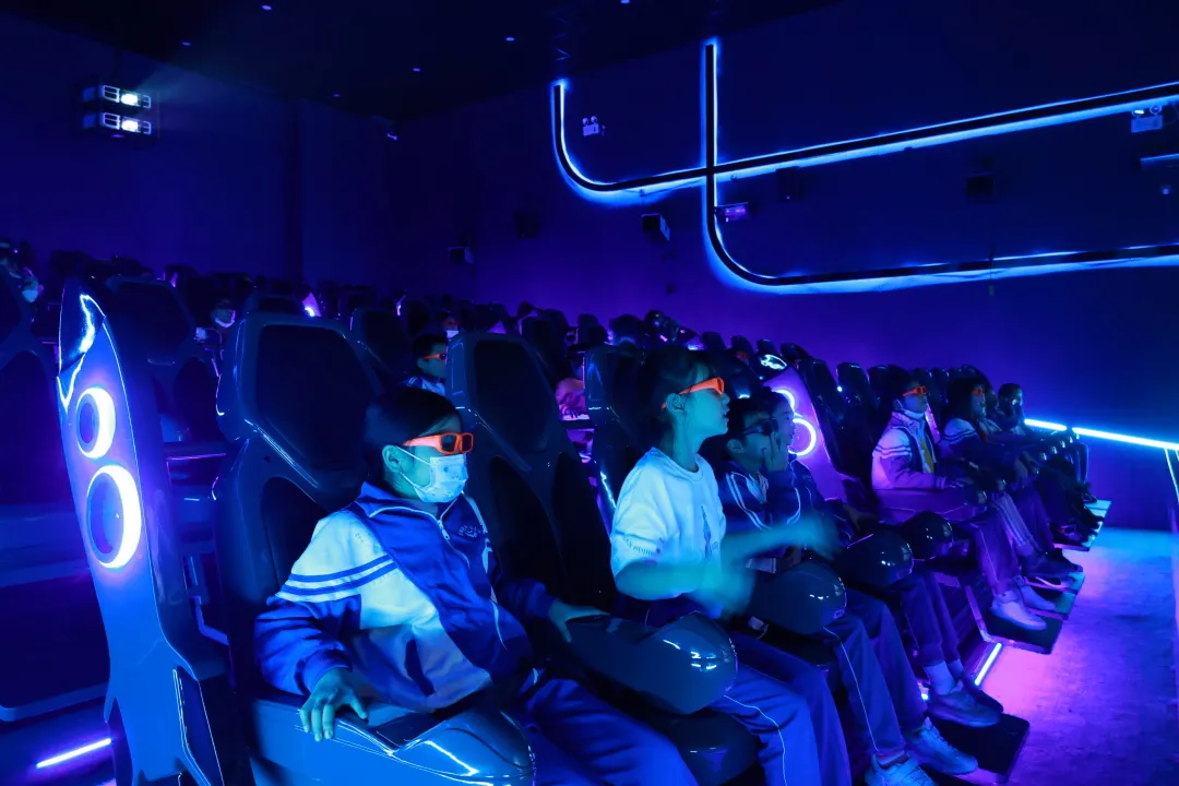 同學(xué)們來到了集視覺、聽覺、觸覺于一體的沉浸式5D影院—超級星劇場